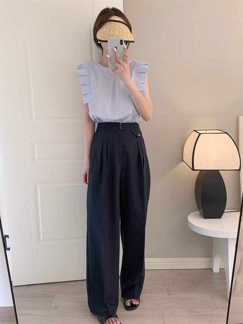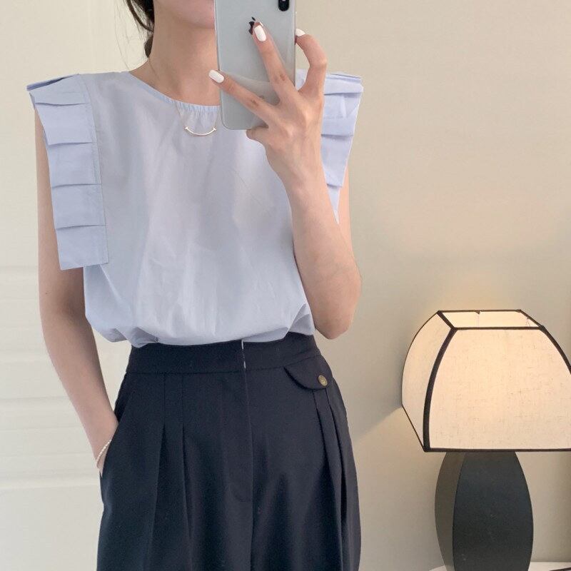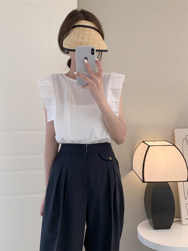 2022夏INS カジュアル 合わせやすい ゆったり ノースリーブ ラウンドネック シャツ/ブラウス