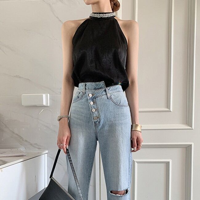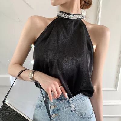 2022夏INS 新作 気質 レトロ ノースリーブ スタンドネック タンクトップ/キャミソール