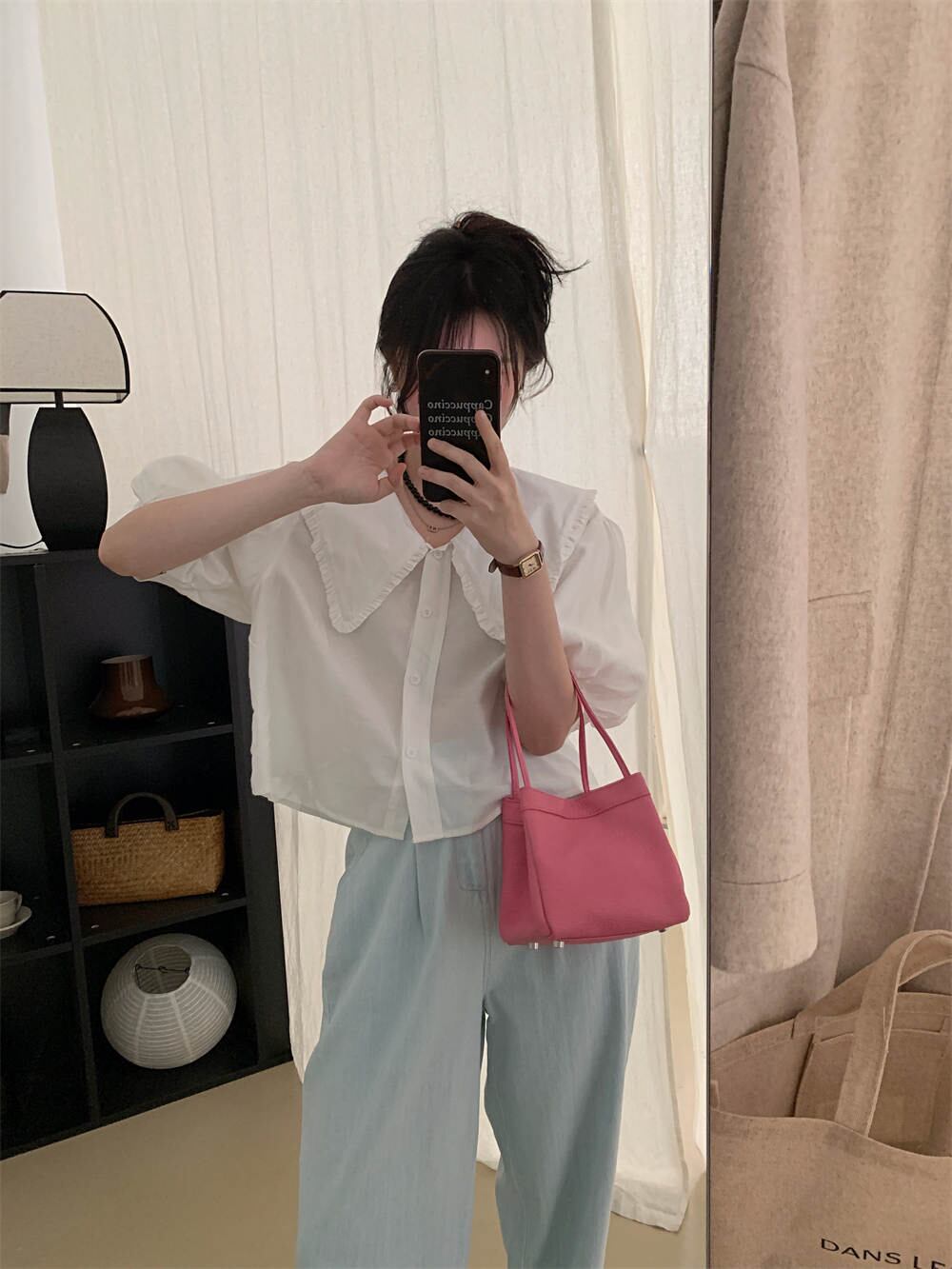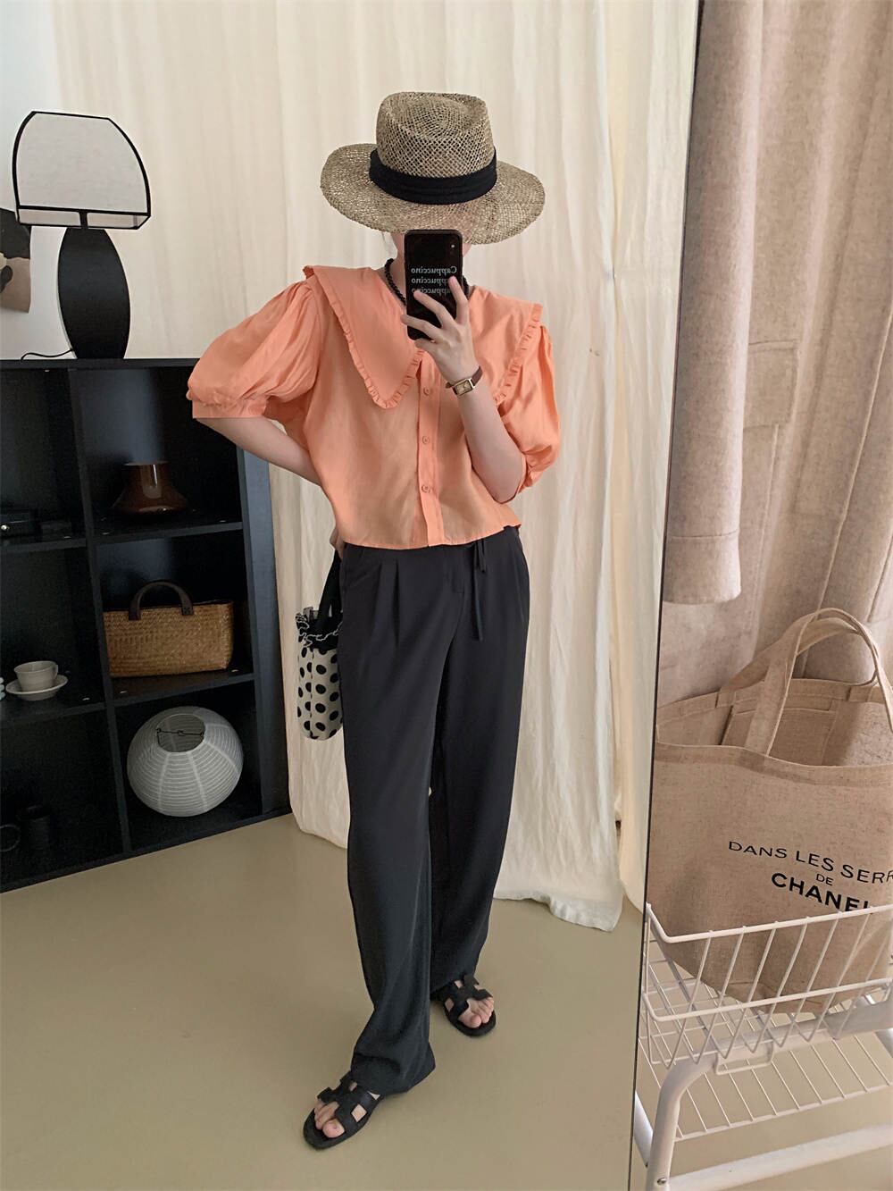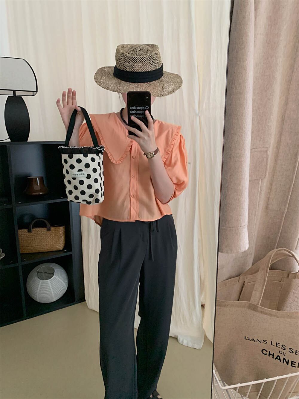 レトロ 若く見え ゆったり 折り襟 切り替え 夏 シャツ/ブラウス
