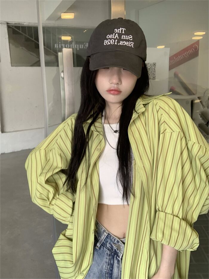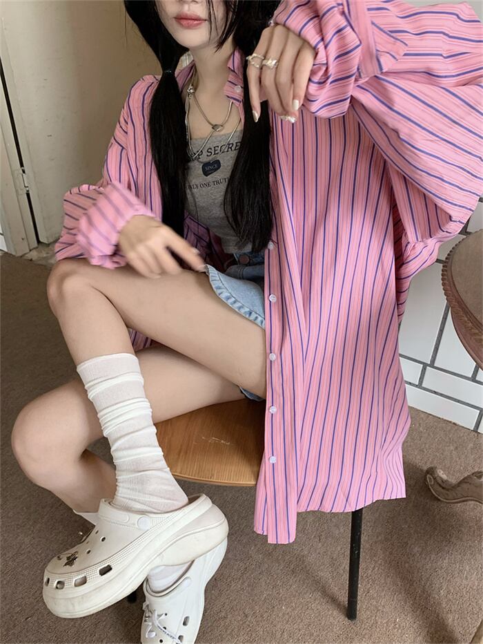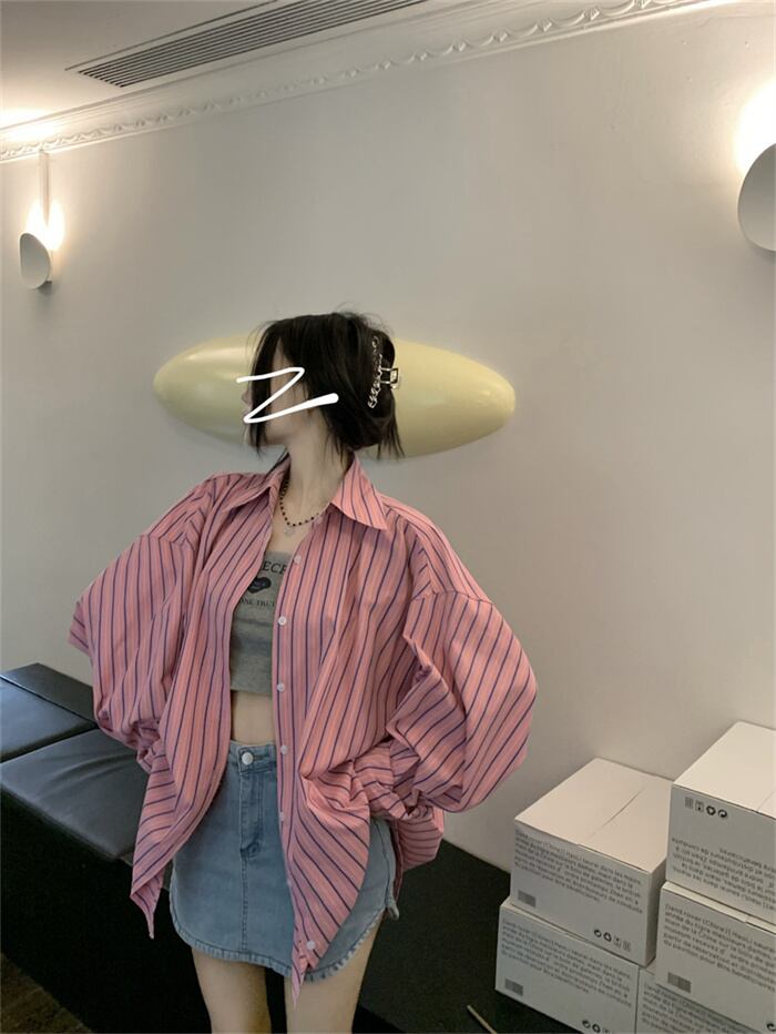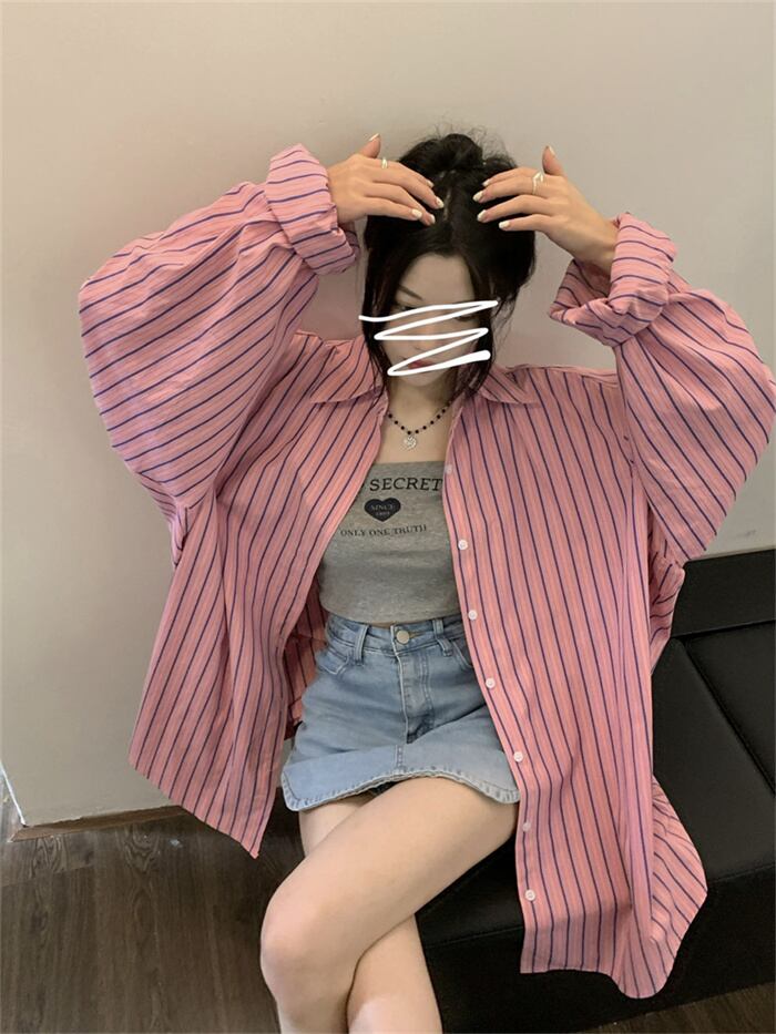新作 韓国の人気爆発 ファッション ストライプ 気質アップ ゆったり 日焼け防止 ブラウス