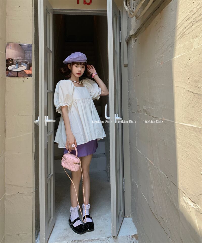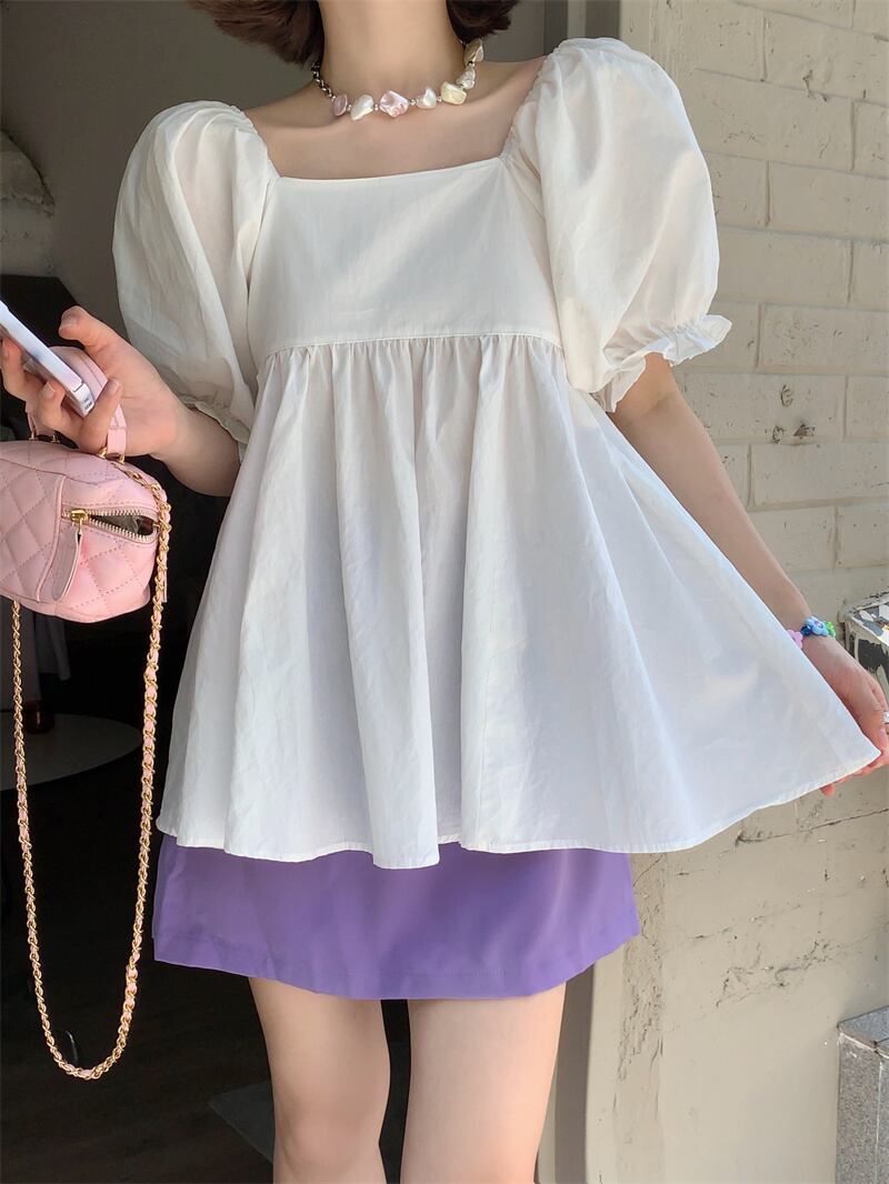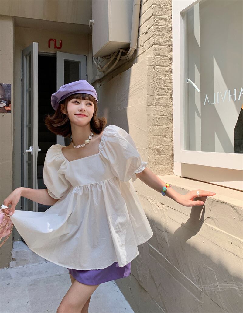 2022年夏新作 カジュアル シンプル パフスリーブ スクエアネック シャツ/ブラウス