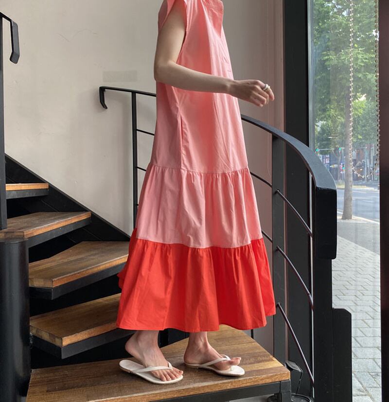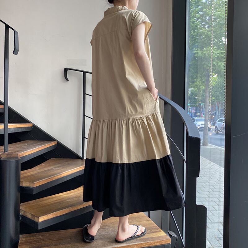 INS 新作 レトロ 気質 ゆったり パフスリーブ 配色 夏 カジュアルワンピース