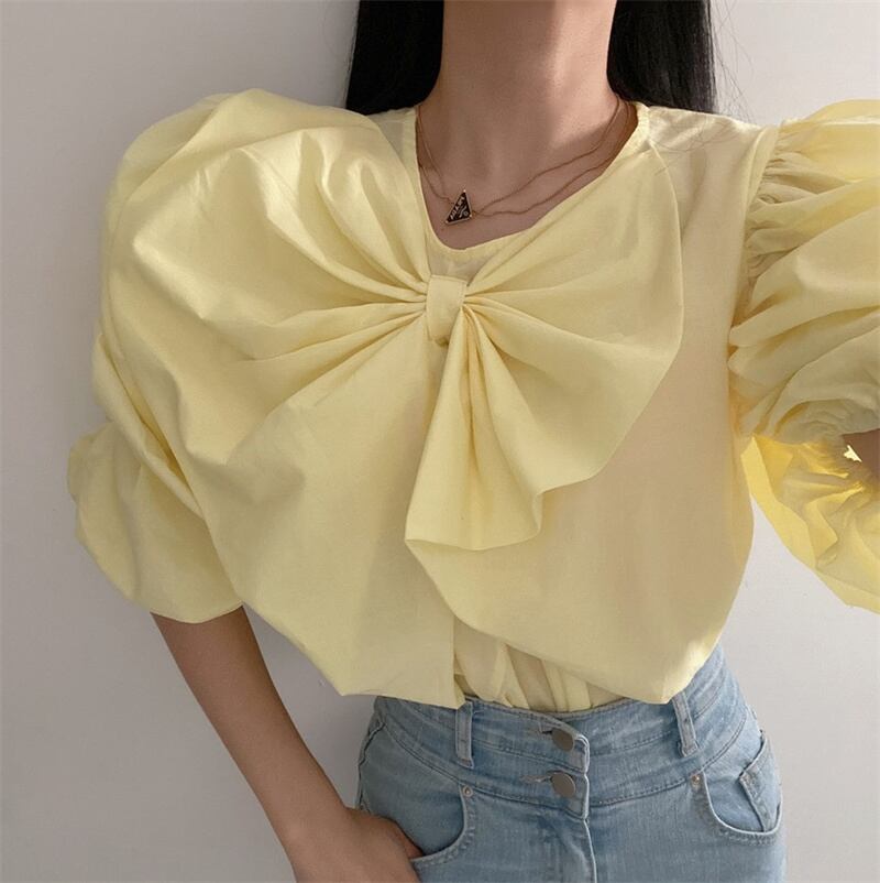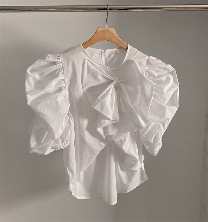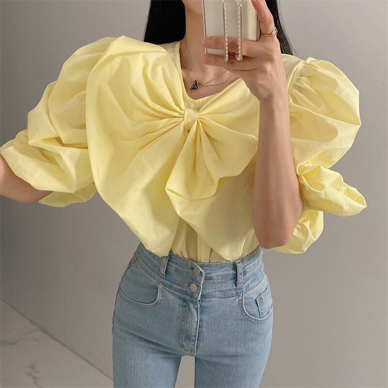 INS 新作 ファッション プリーツ パフスリーブ 切り替え 夏 シャツ/ブラウス
