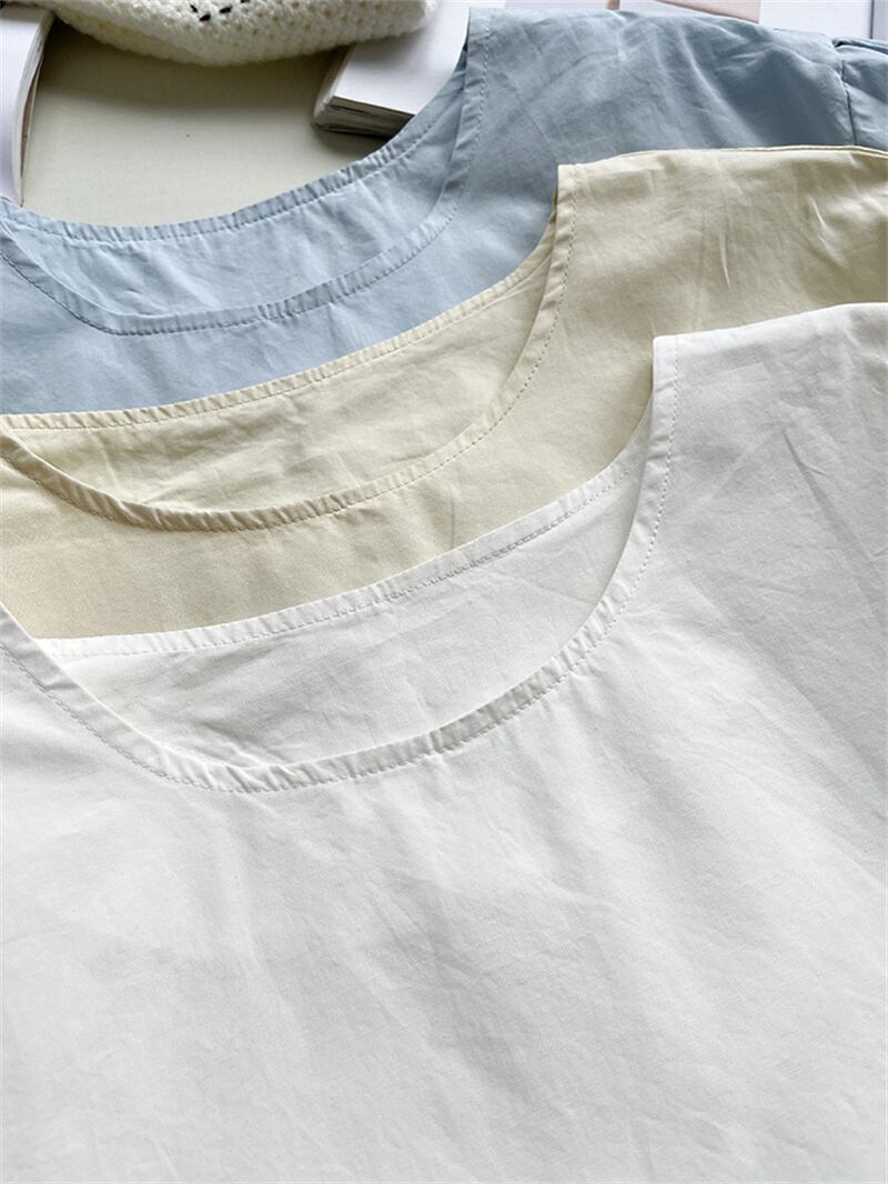 夏INS 新作 好感度UP エレガント シンプル ランタンスリーブ 無地 シャツ/ブラウス