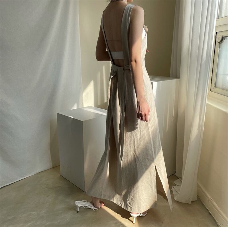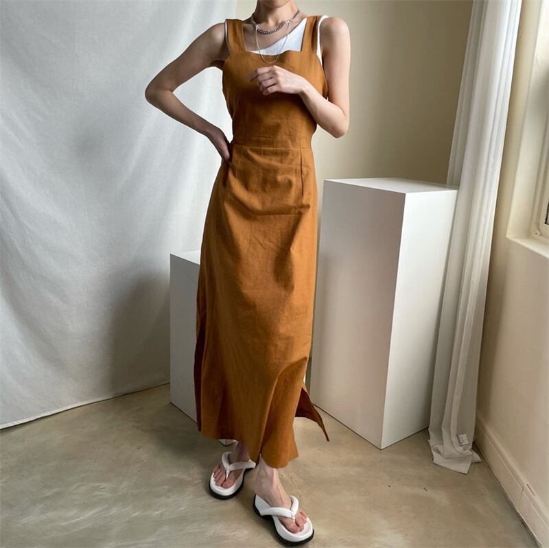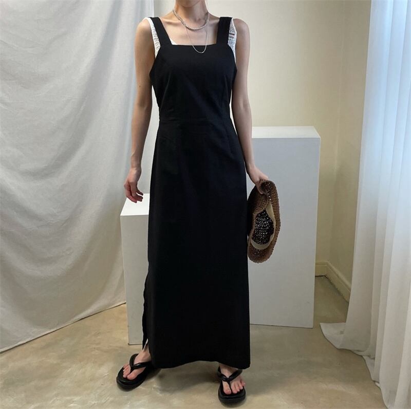 2022夏INS 新作 カジュアル 気質 透かし彫り スクエアネック キャミソールワンピース