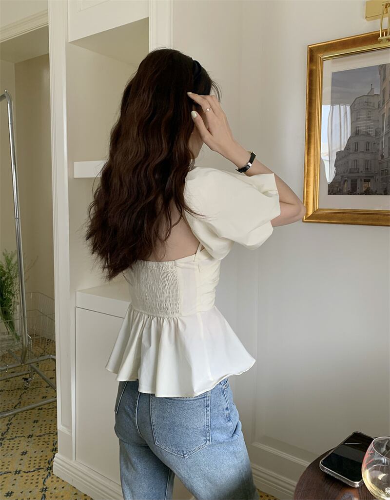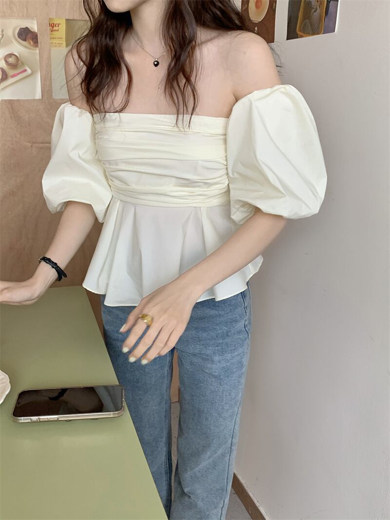 新作 エレガント パフスリーブ オフショルダー チューブトップ ボートネック ブラウス
