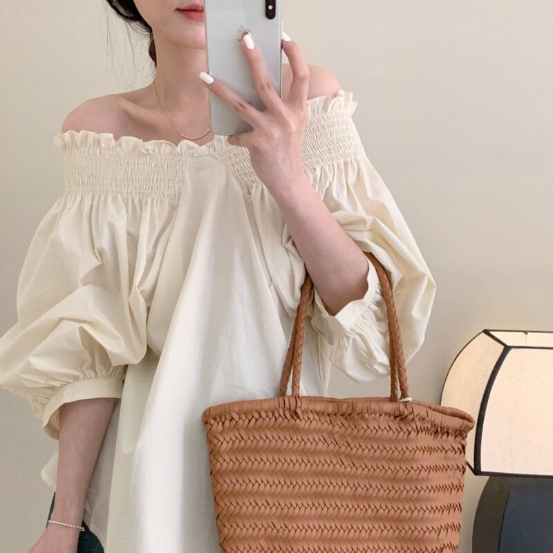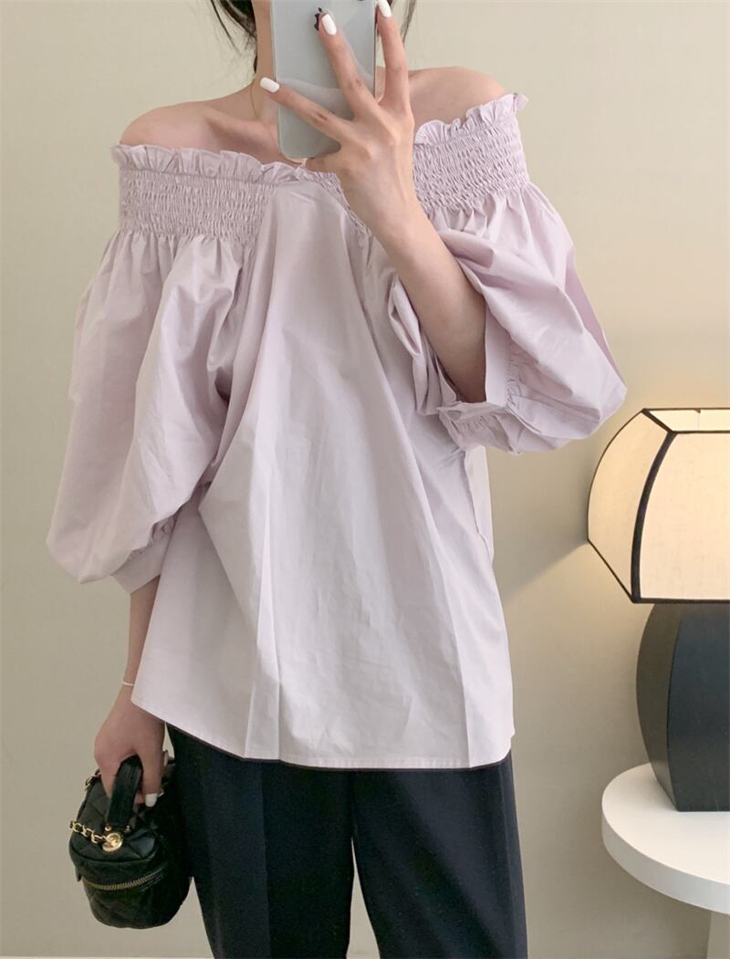 2022夏INS 新作 ゆったり 5分袖 オフショルダー ボートネック シャツ/ブラウス