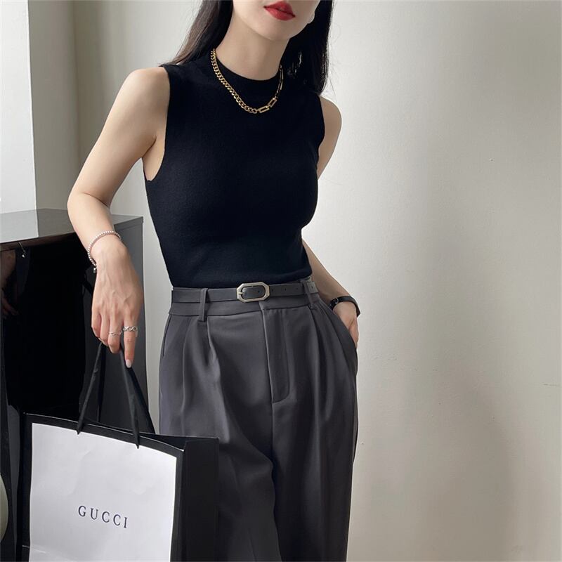 INS 新作 無地 プルオーバー ノースリーブ 夏スタンドネック ハイネック セーター・カットソー