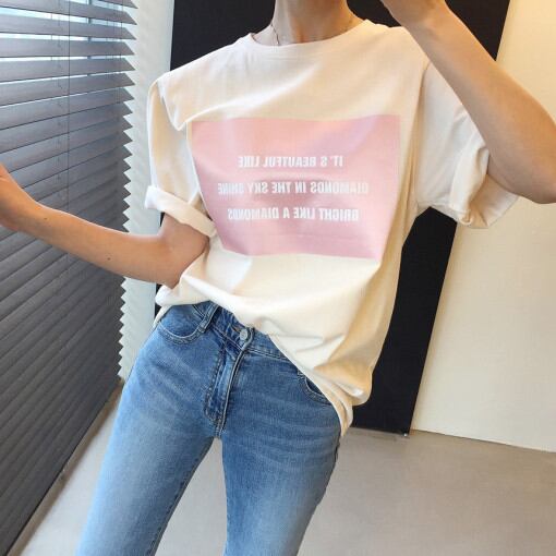 INS 新作 韓国風ファッション アルファベット プルオーバー ラウンドネック Tシャツ
