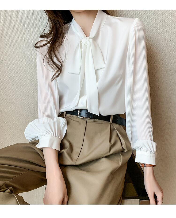 ブラウス シフォンシャツ トップス レディース 長袖 リボン 通勤シャツ カジュアル フォーマル OL