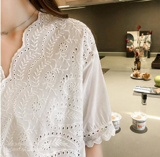 2026年夏新作 ブラウス 半袖シャツ Vネック レディーストップス レース Tシャツ 韓国風