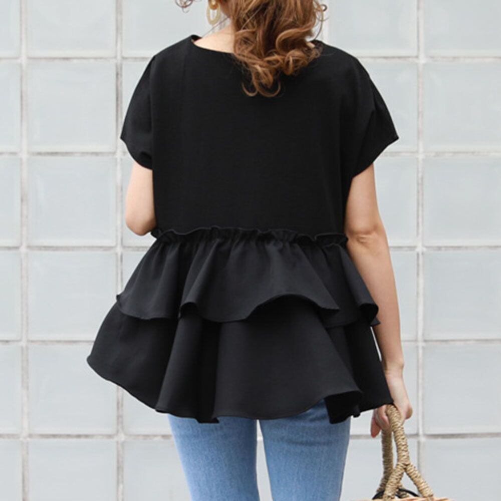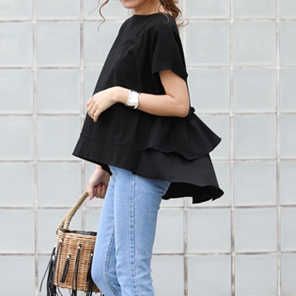 韓国風 Tシャツ レディーストップス 2026夏新作 半袖シャツ ラウンドネック フレア フリーサイズ
