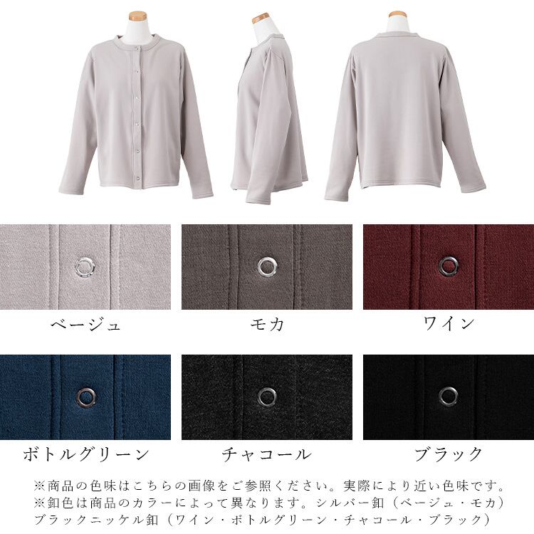 ふんわりあったか裏起毛カットソーカーディガン スナップ釦 リング釦 裏起毛 裏シャギー 防寒 羽織