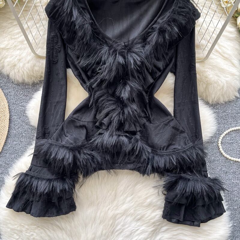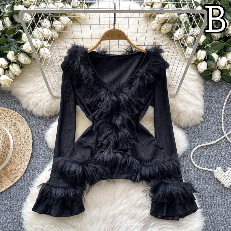 欧米風 セクシー 秋映え 羽根 ベル袖 ブラウス ヴィンテージ風ラグジュアリー