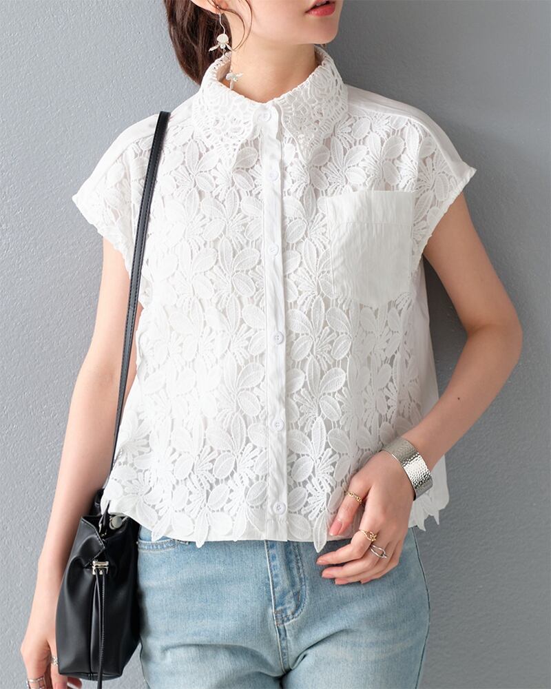【2025新作商品♪】花柄レースノースリーブシャツ
