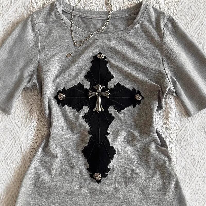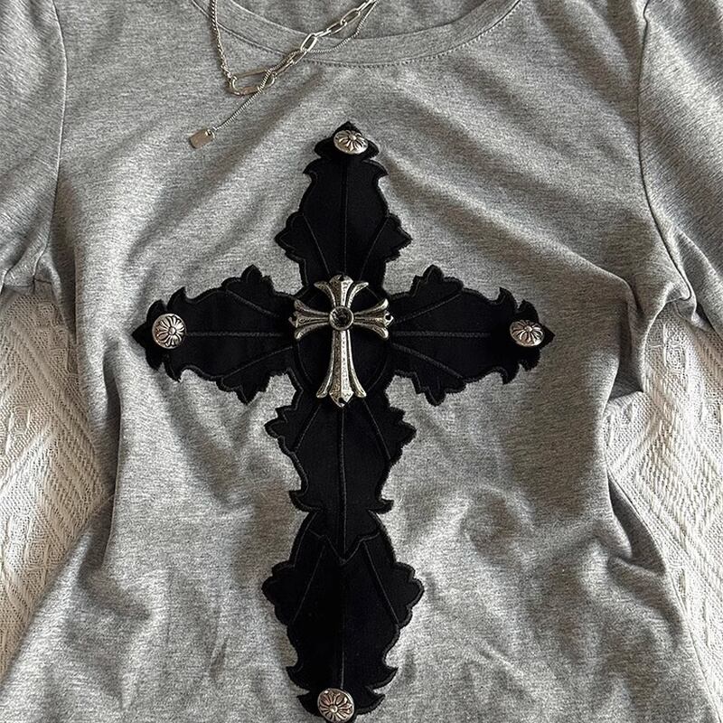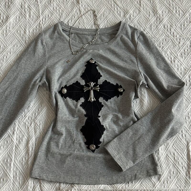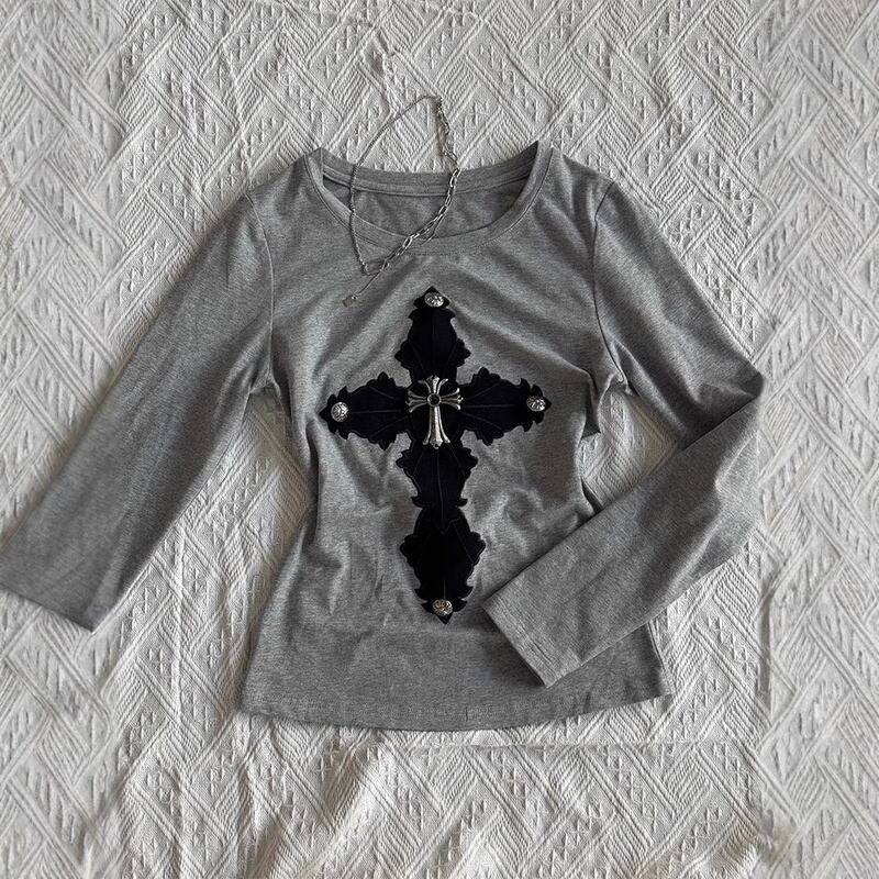 Tシャツ 長袖 ヴィンテージ風 プリント レトロ グレー スリム トップス 秋