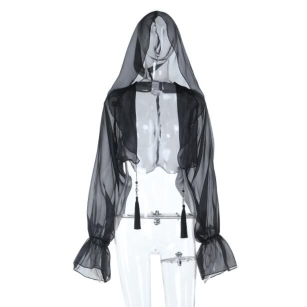 トップス レディース シャツ 長袖 パーカー 暗黒系 肩掛け レース
