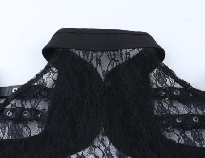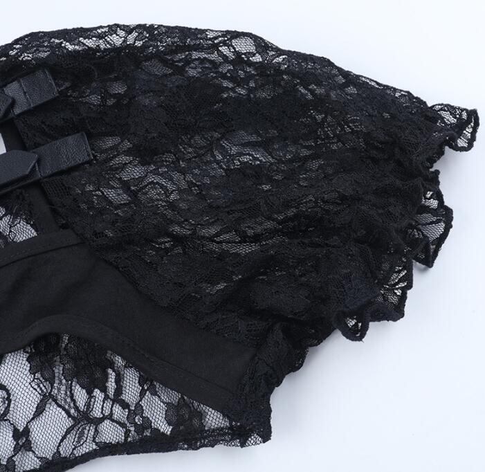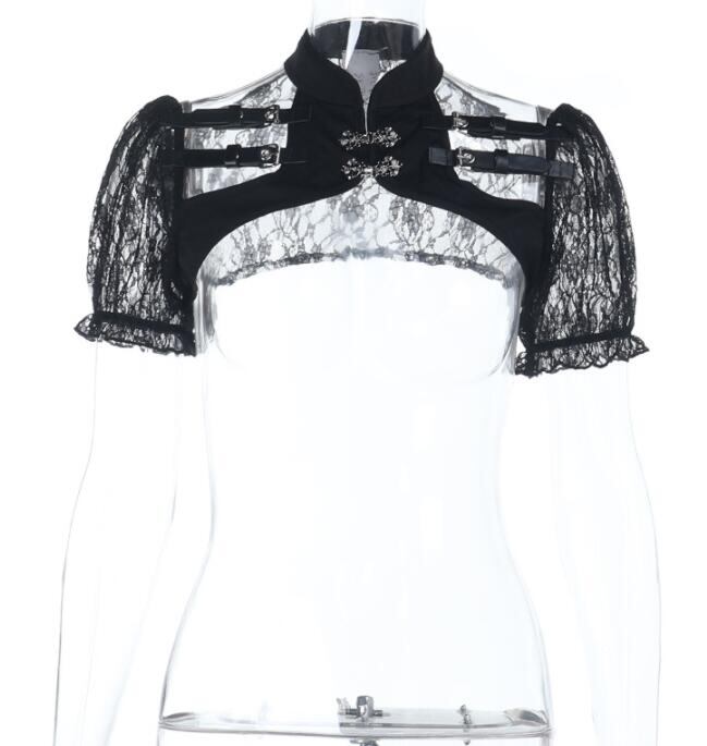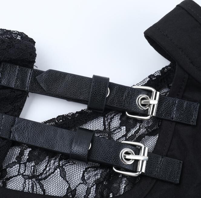 トップス レディース シャツ 半袖 暗黒系 肩掛け レース