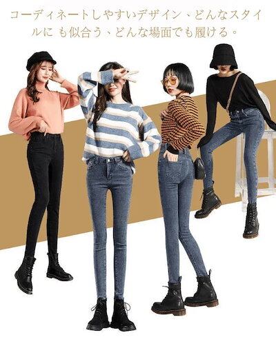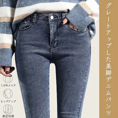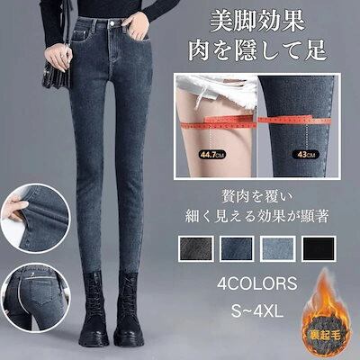 レディース ジーンズ 裏起毛 デニムパンツ ロングパンツ ポケット付き ボタン付き ジップ付きロングデニム ハイウエスト ゆったり 厚手 あったか 暖かい デニムボトムス スキニーパンツ ひ