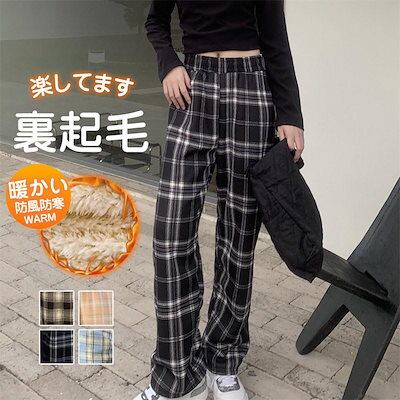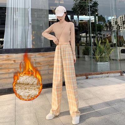 団体購入30件ワイドパンツ ガウチョパンツ レディース コーデュロイ 防寒パンツ 裏起毛 あったか 秋冬 チェック柄 ゆったり ズボン 裏ボア ストレート 爆買