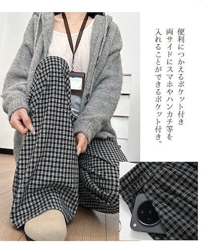 チェック柄 ワイドパンツ レディース ロングパンツ ポケット付き ウエストゴム ボトムス ルームウェア 美脚 カジュアル 体型カバー ゆったり 無地 冬 秋 春 リラックス