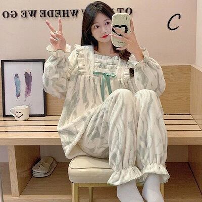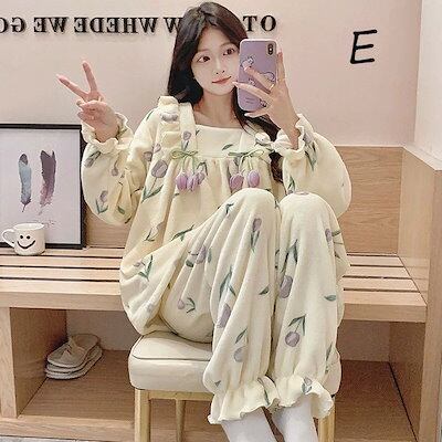 ルームウェア レディース 上下セット かわいい ゆったり ふんわり 長袖 寝巻き 部屋着 暖かい あったか 防寒 パジャマ ナイトウェア パンツ ズボン セットアップ ロリータ ガーリー フリ