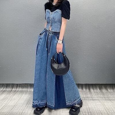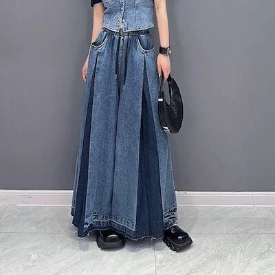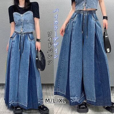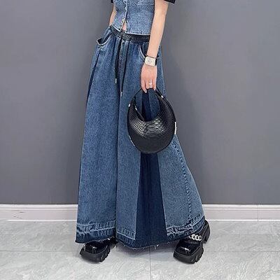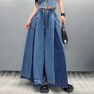 新作 デニム パンツ ワイドパンツ レディース ガウチョパンツ 切り替え フレアパンツ スカーチョ 春秋冬 ロング丈 体型カバー おしゃれ ゆったり カジュアル ナチュラル カジュアル 着痩せ ボトム