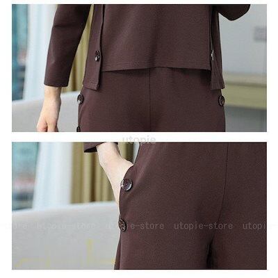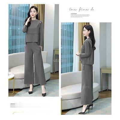セットアップ作ビジネスオフィスOL着痩せトップス長袖ワイドパンツゆったりレディース2点セット入学式卒業式ポケットエレガントフォーマル
