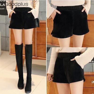 ショートパンツ レディース ワイドパンツ ベロア生地 厚手 秋冬 ゆったり 半ズボン ハイウエスト ウエストゴム 大好評続き