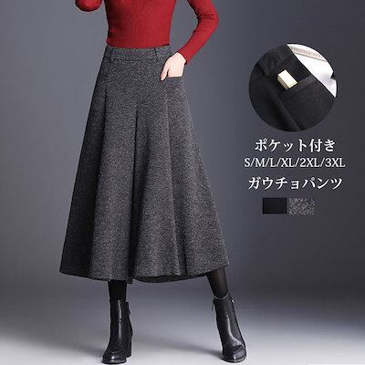 ガウチョパンツ 冬 ワイドパンツ レディース スカーチョ 秋冬 きれいめ キュロット パンツロング タックパンツ ワイド ガウチョ パンツ ボトムス イージーパンツ 仕事 ゆったり コー