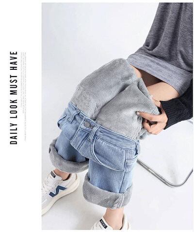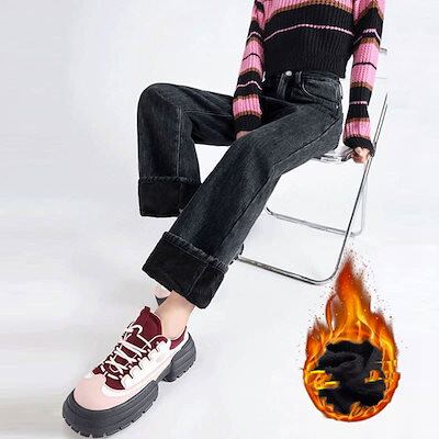裏シャギー デニムパンツ ジーパン 防寒ズボン 厚手 レディース 裏起毛 ジーンズ ワイドパンツ ゆったり ワイド ストレー