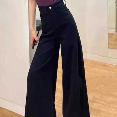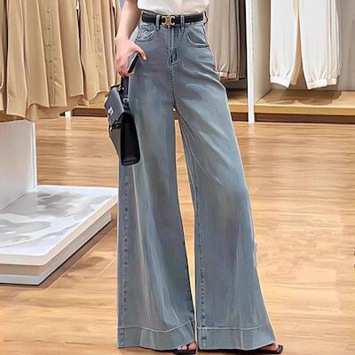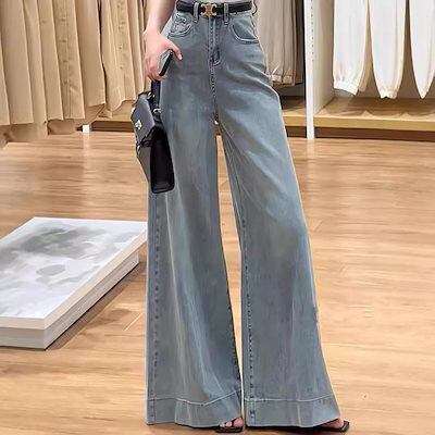 ハイウエスト ワイドレッグ デニム レディース 夏 秋 新作 韓国風 ゆったり 着回し 痩せ見え ドレープ ロングパンツ