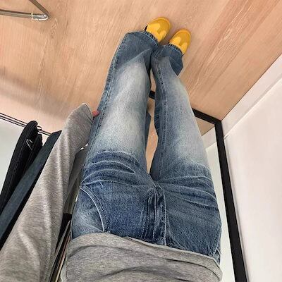【以内出荷】アメリカン レトロ ストレート デニム レディース 春秋 新作 ハイウエスト ビッグサイズ ゆったり 痩せ見え ルーズ ミクロ フレアパンツ