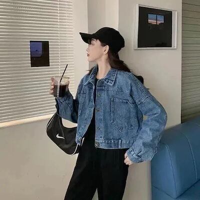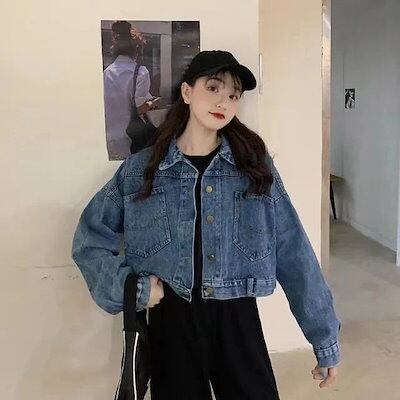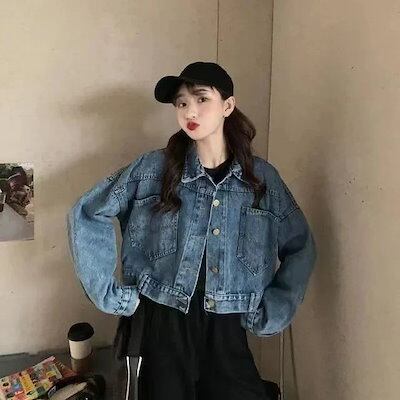 25初新作 新作 風 レディーストップス アウター ゆったりショートトップスヴィンテージ ウォッシュ 開き襟 ジャケット トップス カジュアル デニム アウター ジャケット