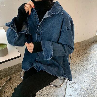 コーデに役立つデニムジャケットファッション 早 ゆったり デニムコートシャツ アウター レディース トップス デザインデニムジャケット