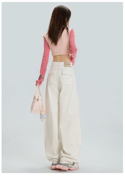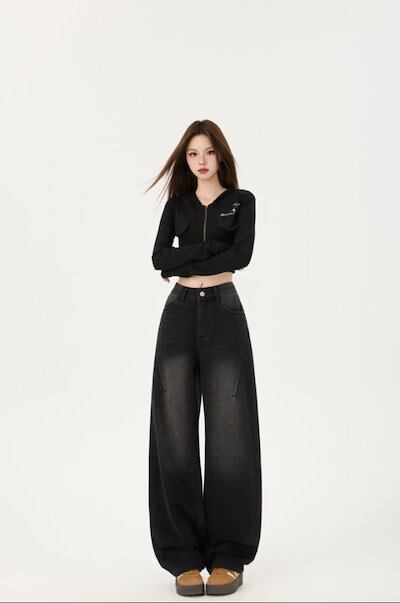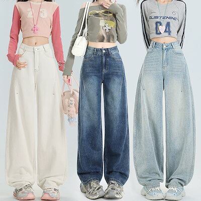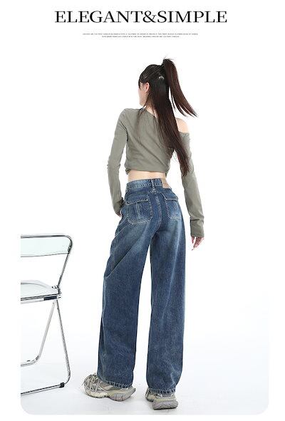 2025 秋 新作 ダークカラー 特徴的リアポケット ハイウエスト 人気沸騰 湾刀型 ワイドレッグ レディース スリミング ストレート ゆったり ロング丈パンツ