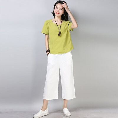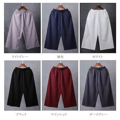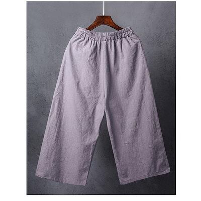 ワイドパンツ パンツ ズボン ガウチョパンツ スカンツ スカーチョ レディース 無地 ウェストゴム ハイウエスト ポケット付き ゆったり 春 夏 30代 40代 50代