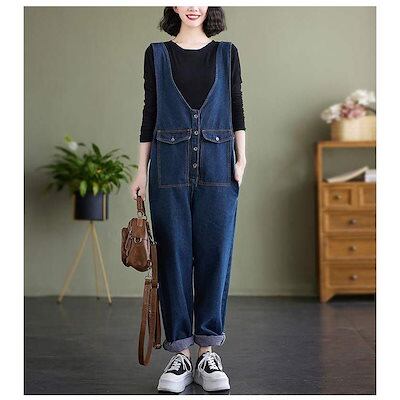 デニム サロペット レディース デニムサロペット 大きいサイズ オーバーオール オールインワン サロペ サルエルパンツ ズボン ボトムス ゆったり 体型カバー