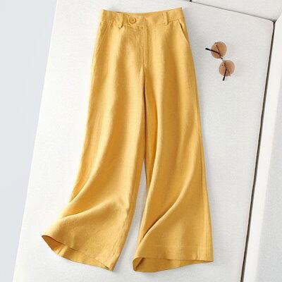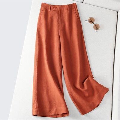 パンツ ワイドパンツ フルレングス 夏秋 重ね着 通勤 ガウチョパンツ パンツ ロング丈 綿麻 レディース ズボン ポケット付き 無地 ゆったり スカンツ スカーチョ