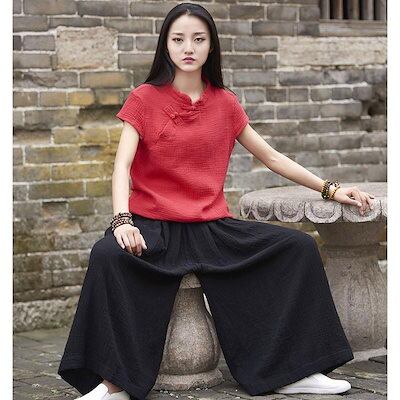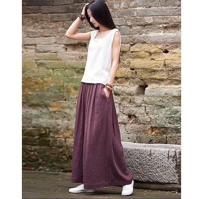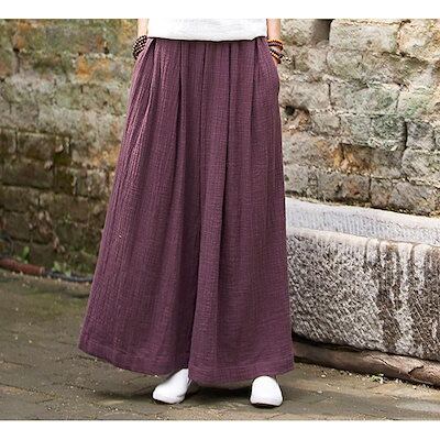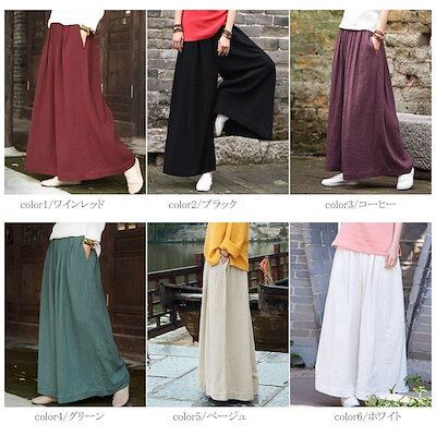 パンツ サルエルパンツ ガウチョパンツ ヨガパンツ バギーパンツ レディース ロング丈 ウエストゴム ポケット付き 無地 リネン ゆったり