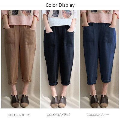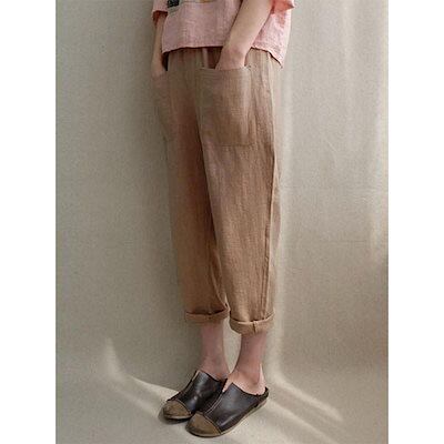 パンツ レディース ボトムス テーパードパンツ チノパン サルエル ロングパンツ パンツ ゆったり コットン リネン 綿麻 ポケット付 薄手 春 夏 秋