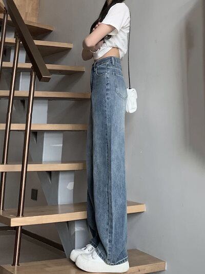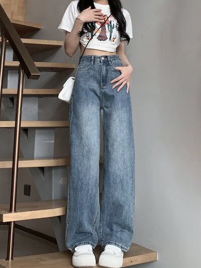 レトロ ストレート レディース 春秋 2025年 新作 人気商品超目玉 ハイウエスト ロング丈 ゆったり スリム ワイドレッグパンツ