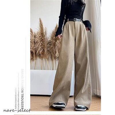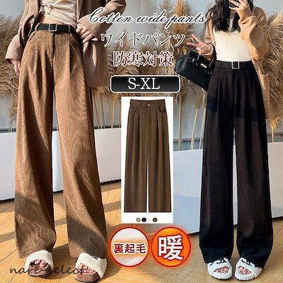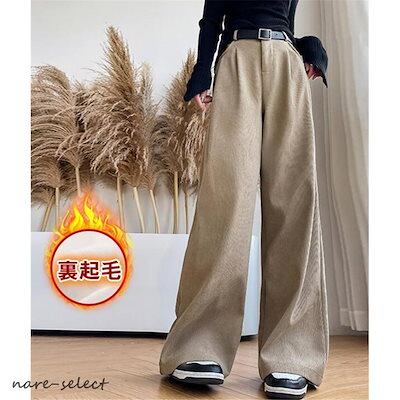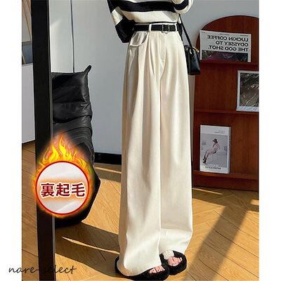ワイドパンツ レディース 裏起毛 ストレート チノパン スラックス ガウチョパンツ ハイウエスト ゆったり ルーズ 防寒 着痩 冬服 暖か 通勤 通学