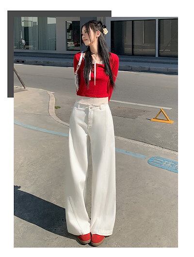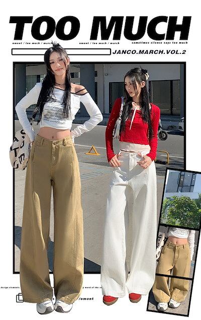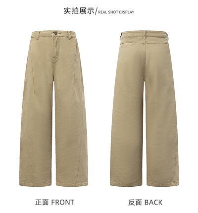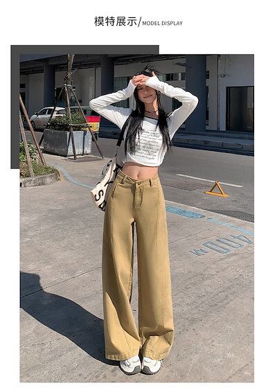 カーキ レディース 2025 春秋 新作 ハイウエスト 目玉商品〜超人気 ストレート ゆったり ドレープ感 スリミング ロング丈パンツ