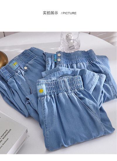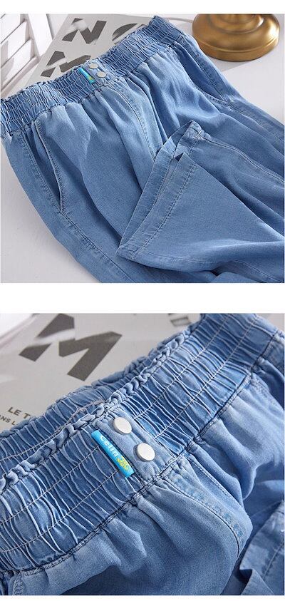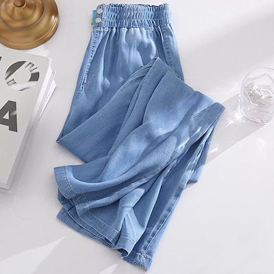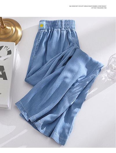 2025 年 春夏 薄手 プラスサイズ レーヨン デニム パンツ レディース ゆったり 目玉商品〜超人気 シルエット スリム 使いやすい ワイドレッグ パンツ インス風