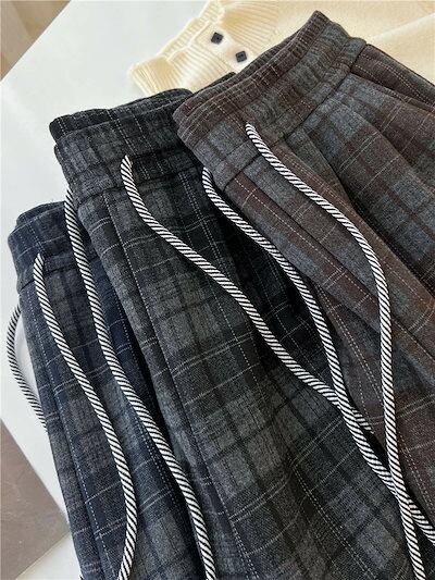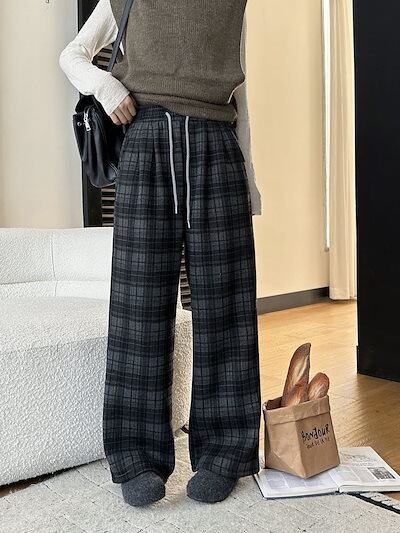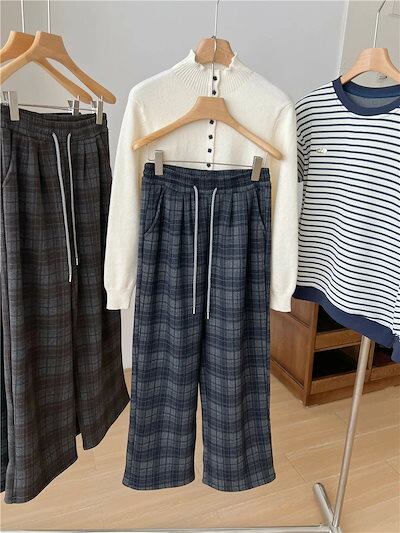 裏起毛 パンツ レディース チェックパンツ 春 秋 冬 ワイドパンツ 長ズボン チェック柄 ガウチョパンツ ウエストゴム パンツ ゆったり ボトムス ロング リラックス ストリート 着痩せ 大きいサイ