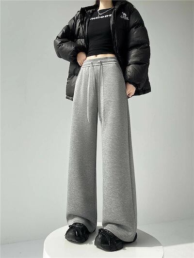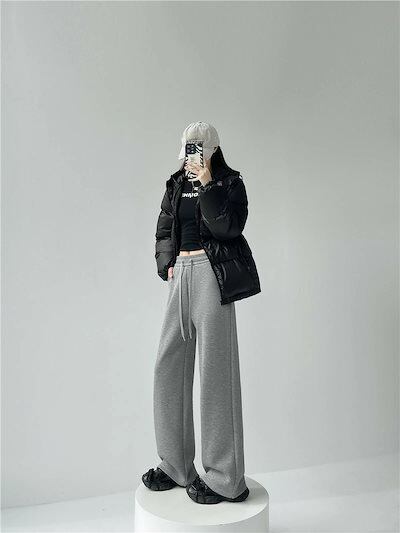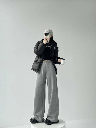 裏起毛 ロングパンツ レディース 冬 ワイドパンツ パンツ ストレートパンツ スウェットパンツ 防寒パンツ ウエストゴム ポケット ゆったり ボトムス ズボン イージーパンツ 無地 体型カバー 裏起毛