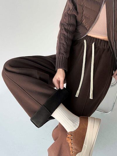 裏起毛 ロングパンツ レディース 冬 ワイドパンツ ウエストゴム パンツ 秋 冬 スウェットパンツ ボトムス ワイド ハイウエスト ポケット付き ロング ゆったり 大きいサイズ ストレートパンツ 裏起