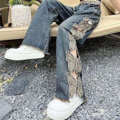 2025春新作 韓国 ハイウエスト 韓国 レディース デニムパンツ ボトムス ワイドレッグ ゆるダボ ジーンズ ゆったり カジュアル ストリート 切りっぱなしカットオフ加工肌見せ ファッション系