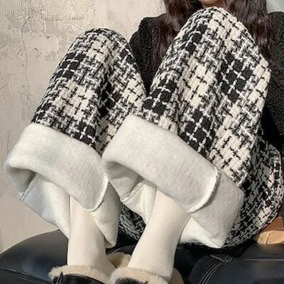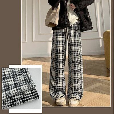 チェックパンツ レディース ワイドパンツ チェック柄 裏起毛 秋冬 ストレートパンツ ロングパンツ ズボン ワイド イージーパンツ ウエストゴム ボトムス リラックス あったか ゆったり おしゃれ